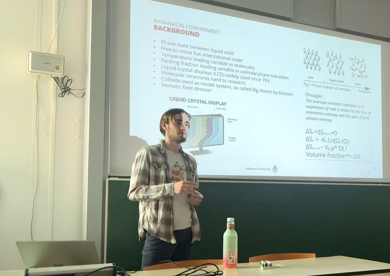 We recently had the pleasure of attending the final presentation of Sjors, one of our master students, who explored the yielding behavior of 2D colloidal crystals. Through careful experiments and thoughtful analysis, the project offered valuable insights into the mechanical response of these systems. Well done on a clear presentation and a strong finish to the research!